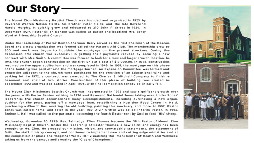 The following are the core beliefs of City of Zion, the Mt. Zion Church based on the foundational truths taught in the bible. All of our teaching and ministry is rooted in and flows out of these biblical doctrines.
